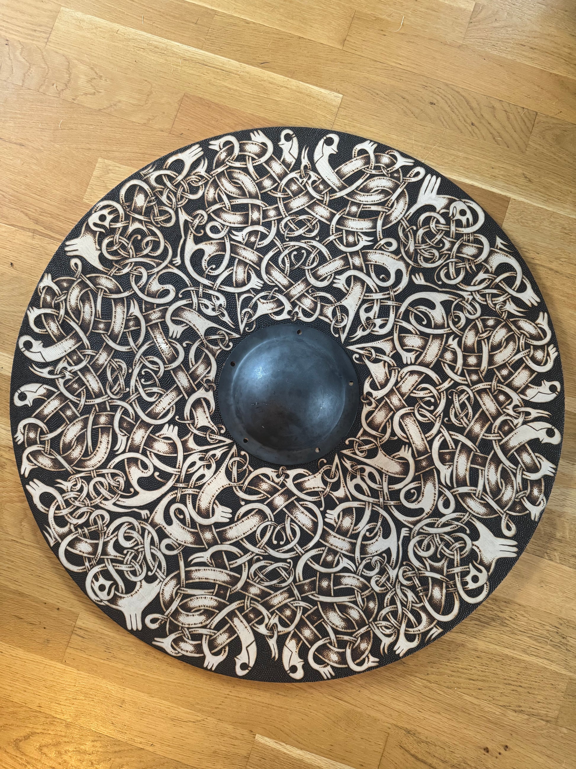 This shield is based on the first and earliest viking age art style from the years 750 until 825.